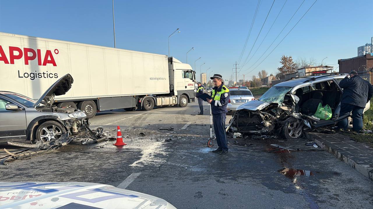 По предварительным данным Госавтоинспекции, около 07.46 водитель автобетоносмесителя «SHAANXI», перестраиваясь из правой полосы в левую, не уступил дорогу автомобилю «Volvo XC70». После столкновения легковушку отбросило на встречную полосу, где она врезалась в «Toyota RAV4».