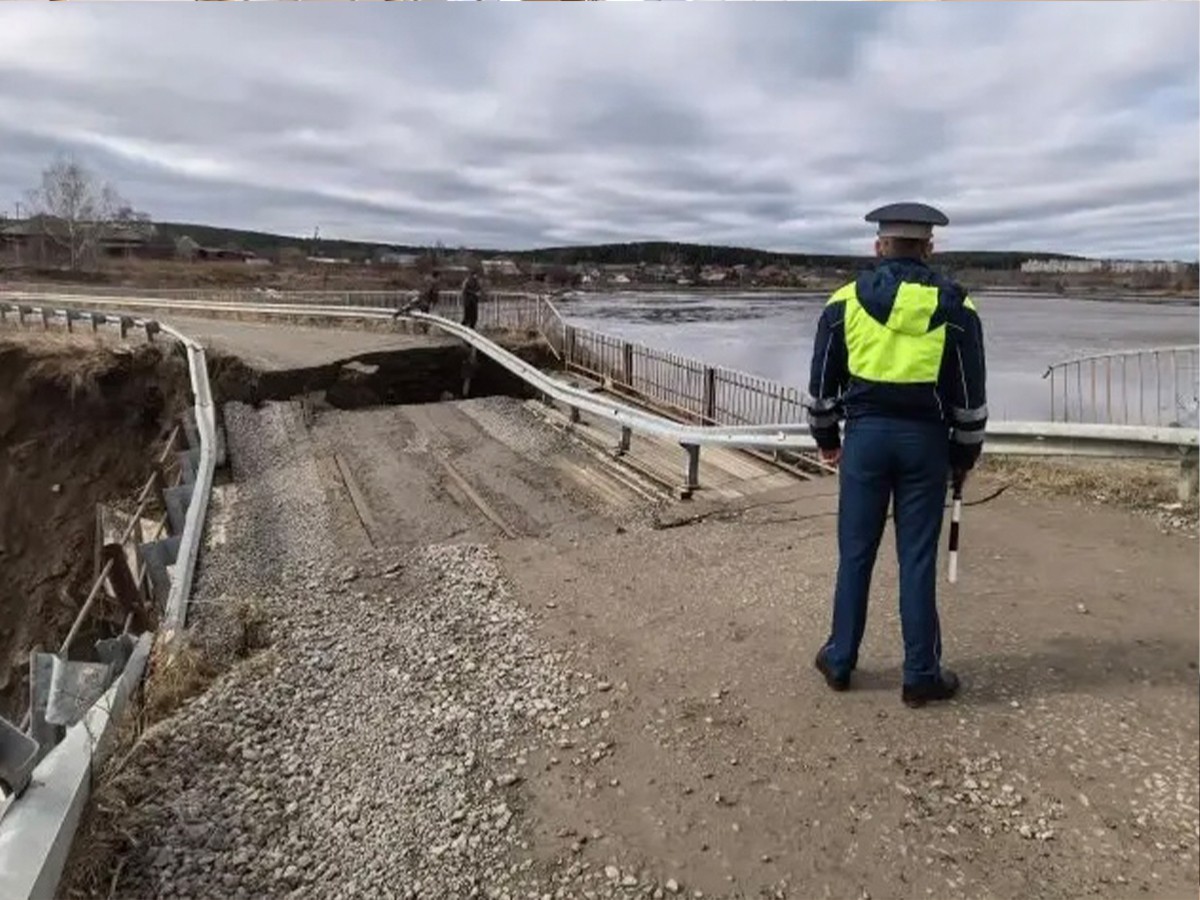В Свердловской области паводок разрушил мост в селе Лая Горноуральского муниципального округа.