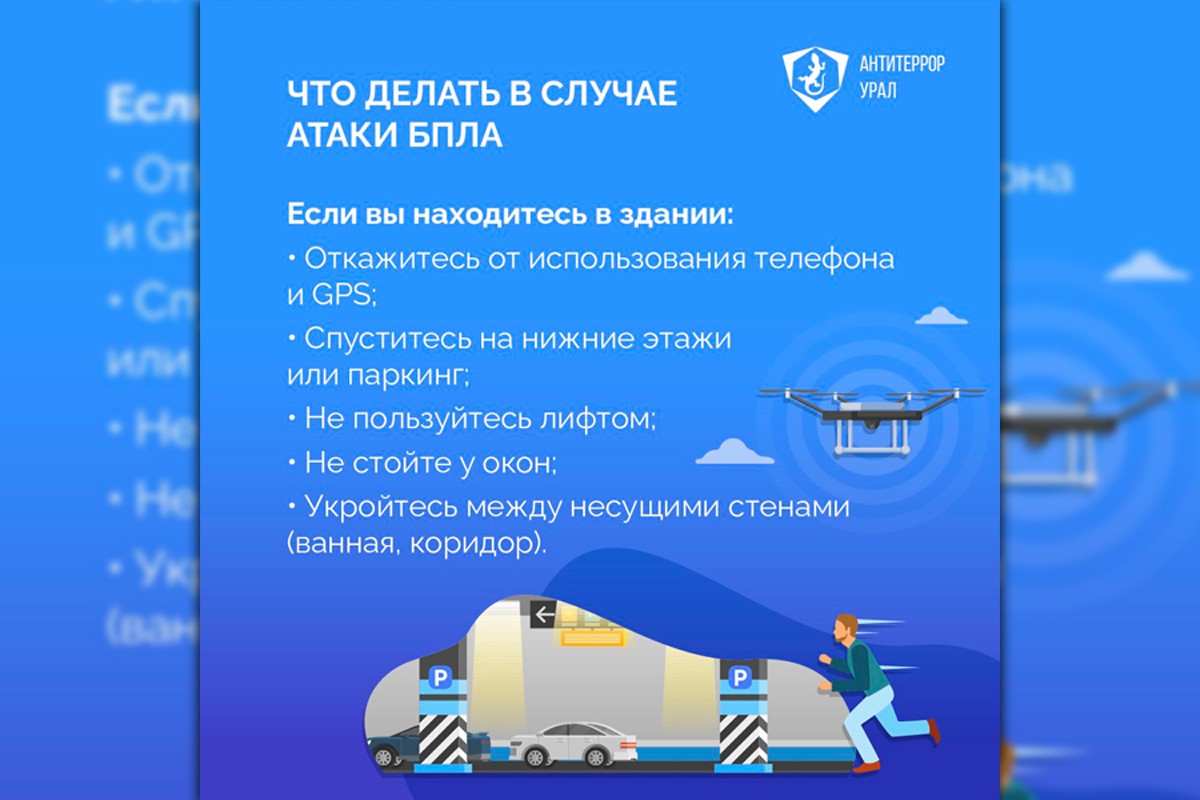 Накануне в телеграм-канале антитеррористической комиссии Свердловской области «Антитеррор Урал» опубликовали правила поведения при объявлении «Беспилотной опасности».