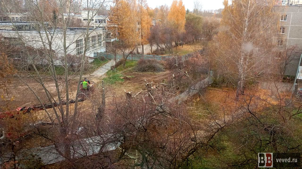 Массовую вырубку деревьев производят вокруг школы №92 в екатеринбургском микрорайоне Кольцово
