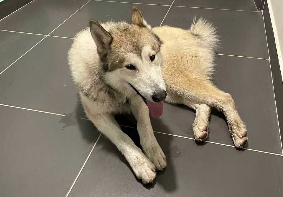 Про собаку сообщают, что она похожа на лайку. По характеру неагрессивная, а — напротив — дружелюбная и ласковая. На ней ей ошейник, а ногти ещё не отрасли после «педикюра», то есть «бомжом» собака стала совсем недавно.