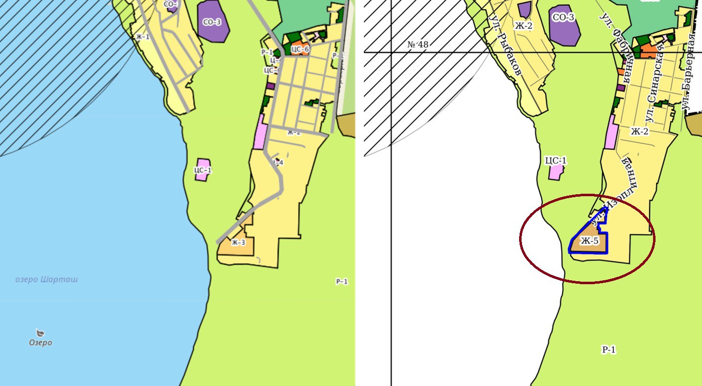 Всего в проекте значится 17 изменений, наиболее заметное из которых, пожалуй, — установление зоны Ж-5 (многоэтажная жилая застройка) вместо зон Ж-2 и Ж-3 (зоны ИЖС и малоэтажной многоквартирной жилой застройки соответственно) на участке на восточном берегу озера Шарташ, на улице Изоплитной.